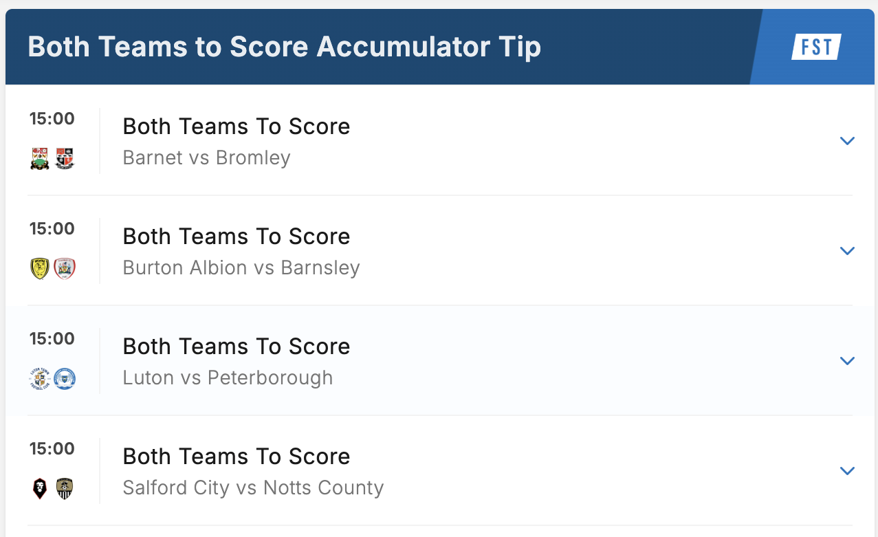 Earlier in the day, we landed a 13/2 Both Teams to Score acca across the 3pm kick-offs in League One and Two.