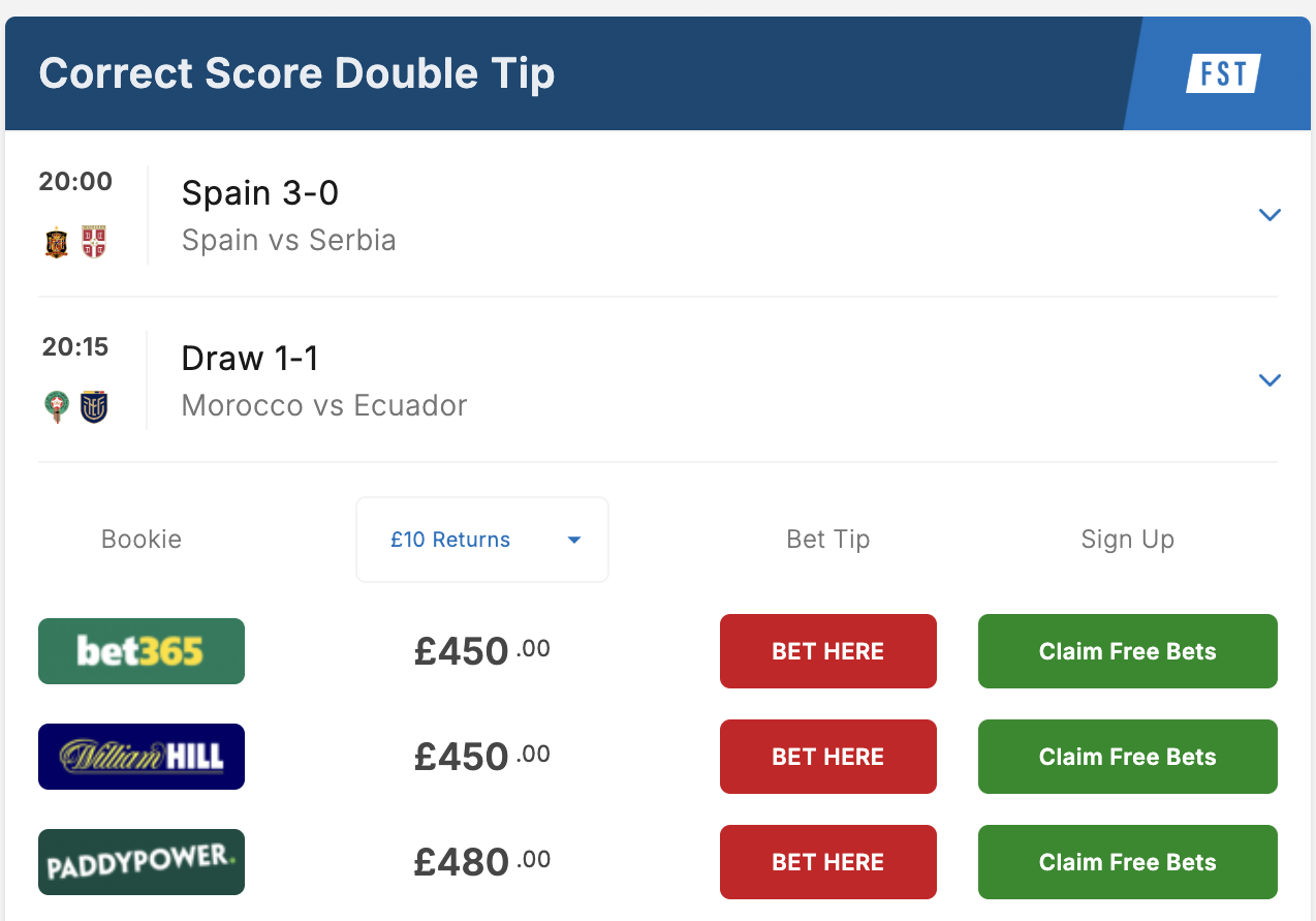We had backed Spain to win to nil as Friday’s Bet of the Day at 21/20, and Serbia barely threatened, recording only two shots against a dominant Spanish side.