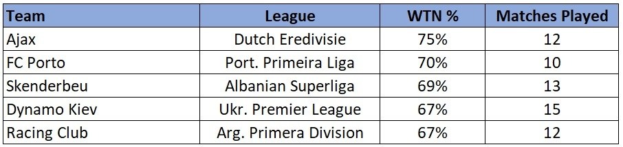 With some of the most domestically dominant clubs in Europe winning to nil in around half their games or less, finding teams that have pushed their WTN percentages into the 60s and 70s might feel like an impossible task.