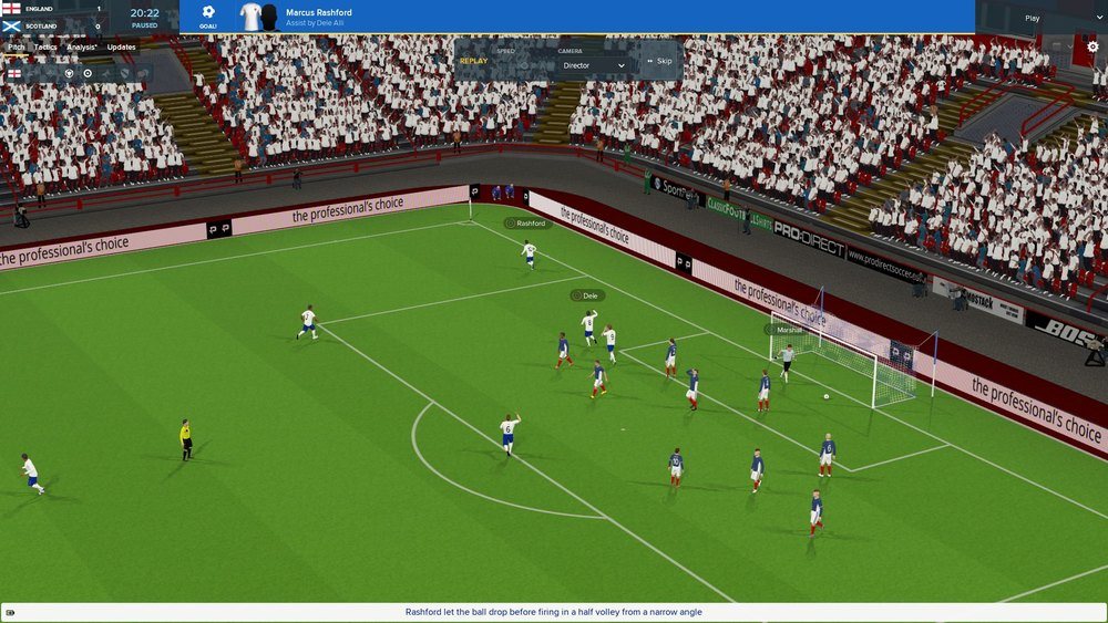 My first squad is selected and we’re at the team hotel preparing for an onslaught of the Scottish blue and white. There are some anxious looking faces around the breakfast table on the morning of the game. From the look on his face it seems like we might be seeing Jadon Sancho’s continental breakfast make a reappearance soon. That’ll teach him to snub the full English the rest of the lads are having.
